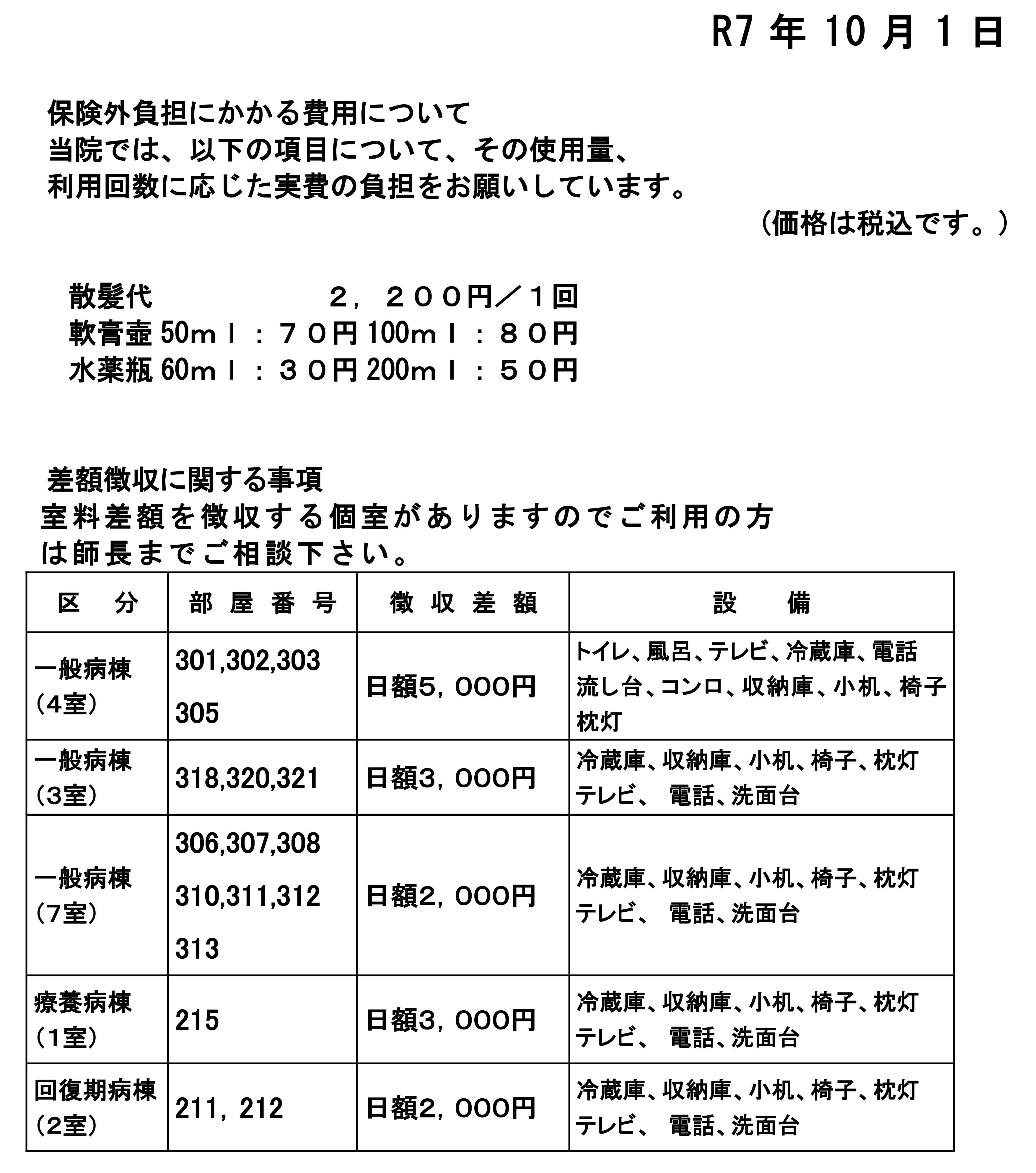 ・特別室をご利用の場合、また、文書料は別に定める料金をご請求いたします。
